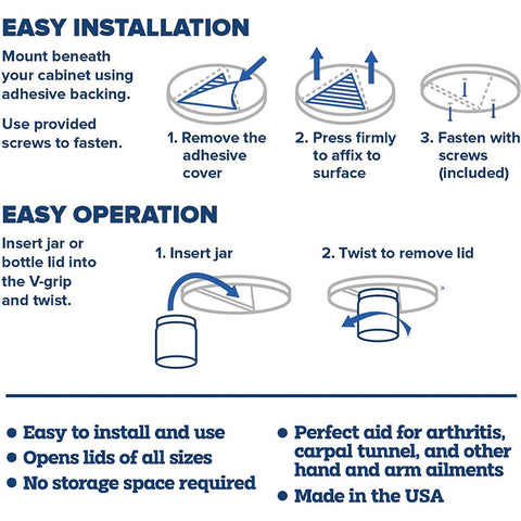 - ALLA STORLEKAR PÅ LOCK - Den kan öppna en liten vattenflaska i plast eller en jättestor tub med spagettisås. Artrit burköppnare kan ta alla lockstorlekar eller typer i sin smala till breda V-formade mun.