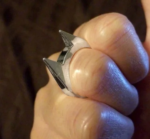 Perfekt för utomhusaktiviteter eller på väg till/från bilen. Om du letar efter en självförsvarsring som är liten och kompakt bör du överväga denna ring. Den har ett par sneda spetsar som är mjuka att ta på, men som blir kraftfulla i en knytnäve. Den är slitstark och kan snabbt sättas på för att ge oavbruten omedelbar skydd. Den kan enkelt förvaras i plånboken, som halsband eller nyckelring.