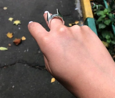 Denna eleganta, vardagliga och skyddande ringen ger diskret säkerhet. Du behöver inte dra, bara knyta näven för att försvara dig intuitivt och effektivt. Mode möter funktion med denna ring – din stiliga och kraftfulla allierade för din personliga säkerhet.