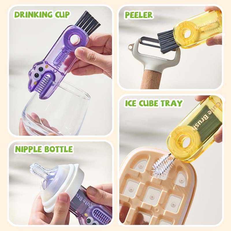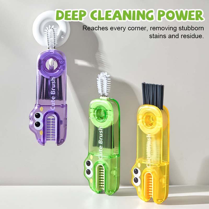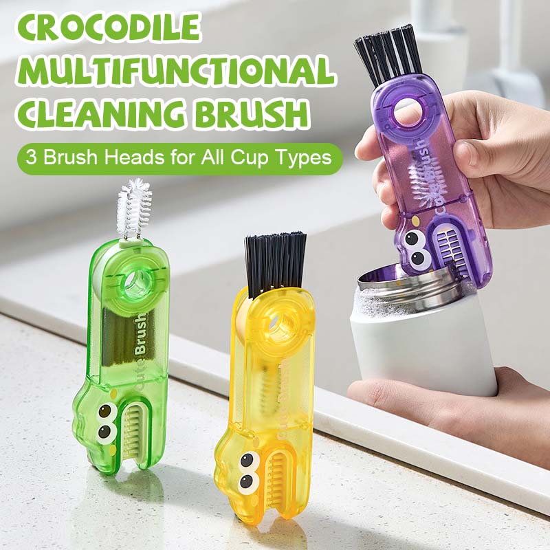 đ Krokodil Multifunktionell rengöringsborste - 3 borsthuvuden för alla kopptyper