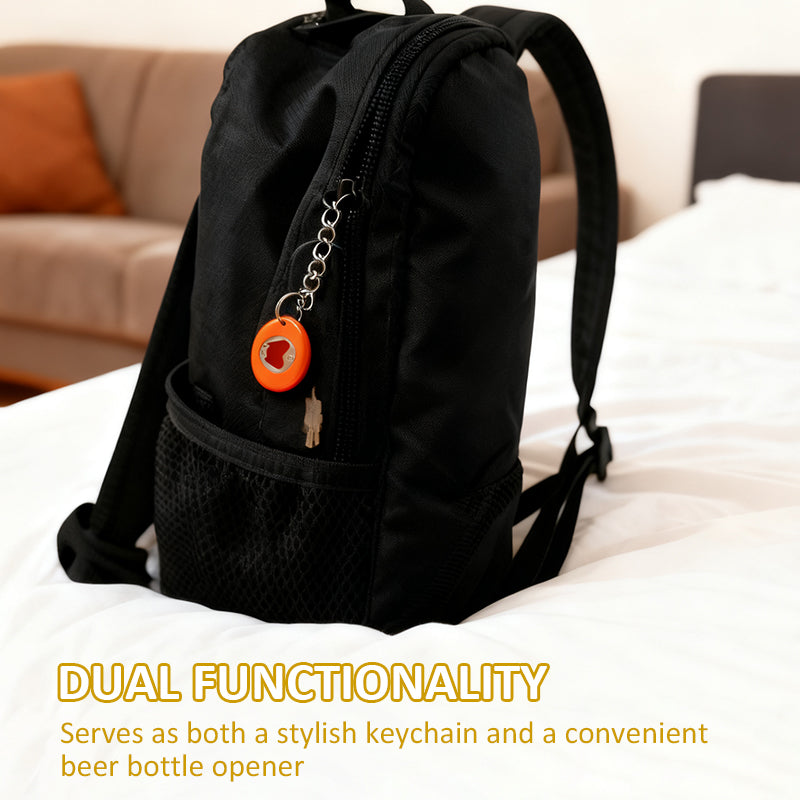 Den Àr tillverkad av förstklassig ABS-plast och Àr lÀtt, men byggd för att hÄlla. FÀst den pÄ nycklarna, ryggsÀcken eller kylvÀskan och du kommer aldrig att behöva vara utan kapsylöppnare igen. TillrÀckligt liten för att ha med överallt, tillrÀckligt stark för att öppna flaskor i flera Är.