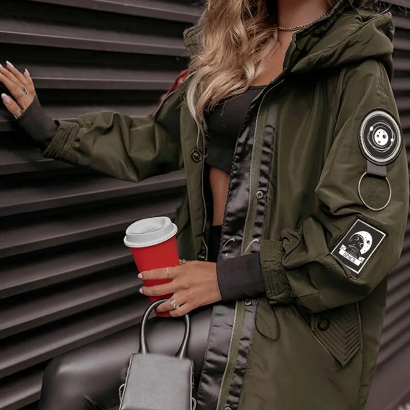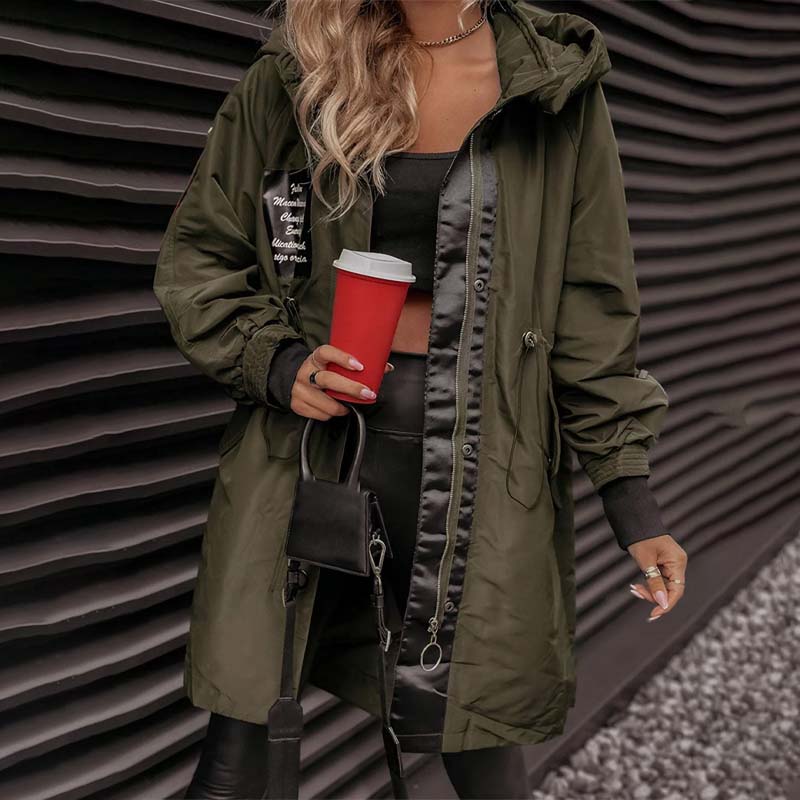 đLĂ„ngĂ€rmad jacka med huva för damer
